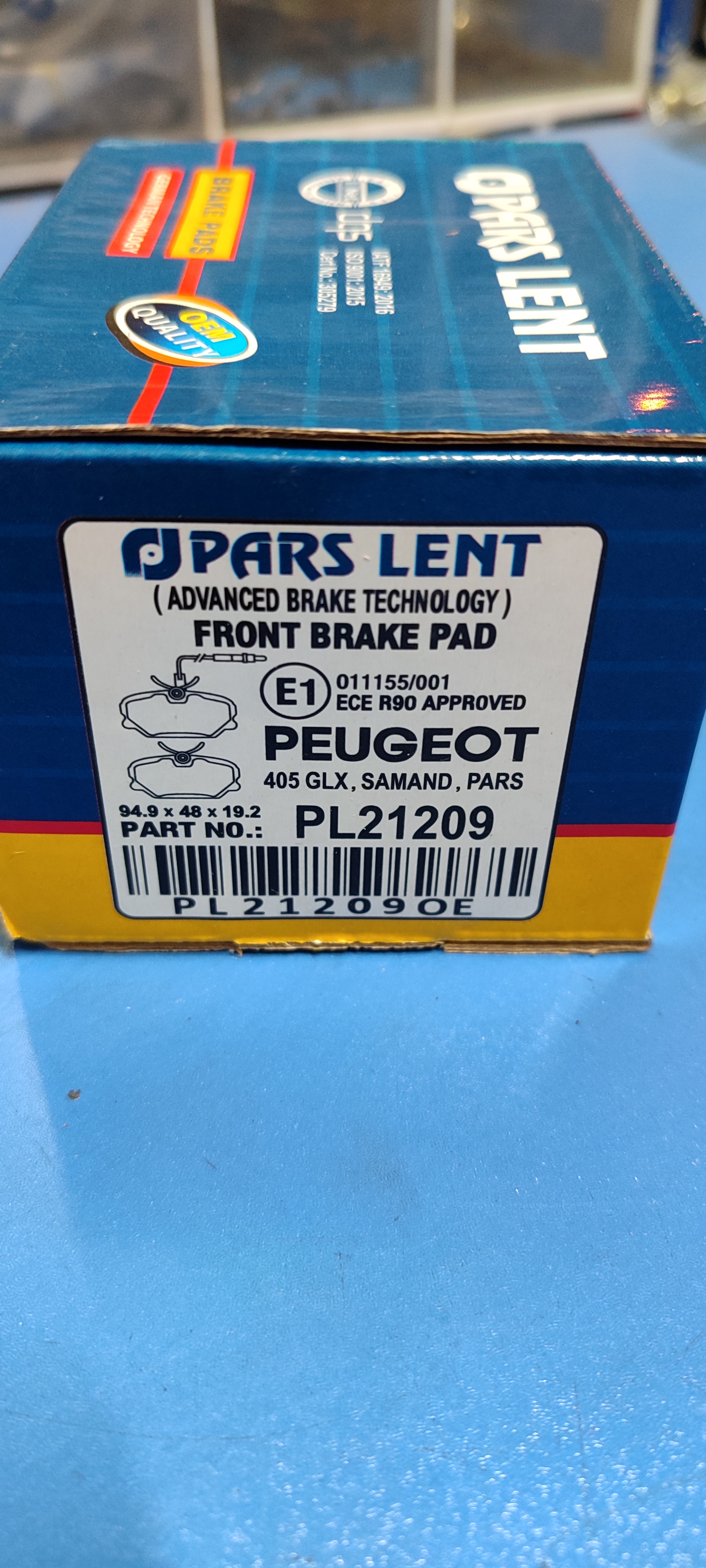 لنت ترمز جلو پژو ۴۰۵ پارس آبی